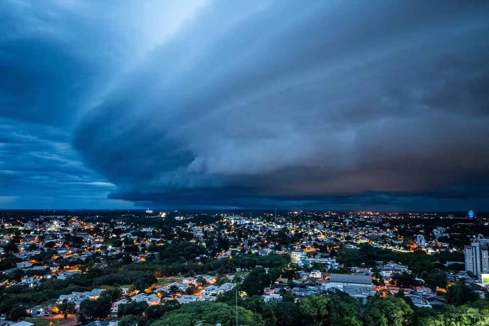 Nuvem prateleira, que antecede tempestades, cobre Foz do Iguaçu
