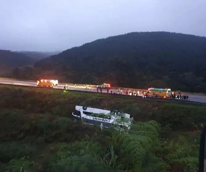 O veículo seguia de São Paulo em direção a Curitiba quando perdeu o controle na região da represa do Capivari e tombou em uma ribanceira.