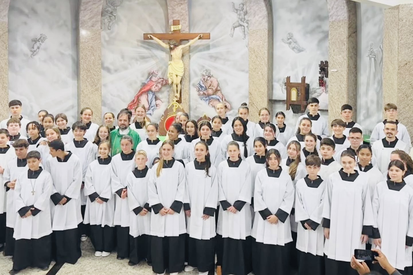 Com a igreja lotada, o momento marcou os jovens que assumem o belo ministério de servir ao altar durante as celebrações litúrgicas, auxiliando o padre e ajudando a comunidade a viver com mais reverência e beleza a Santa Missa.