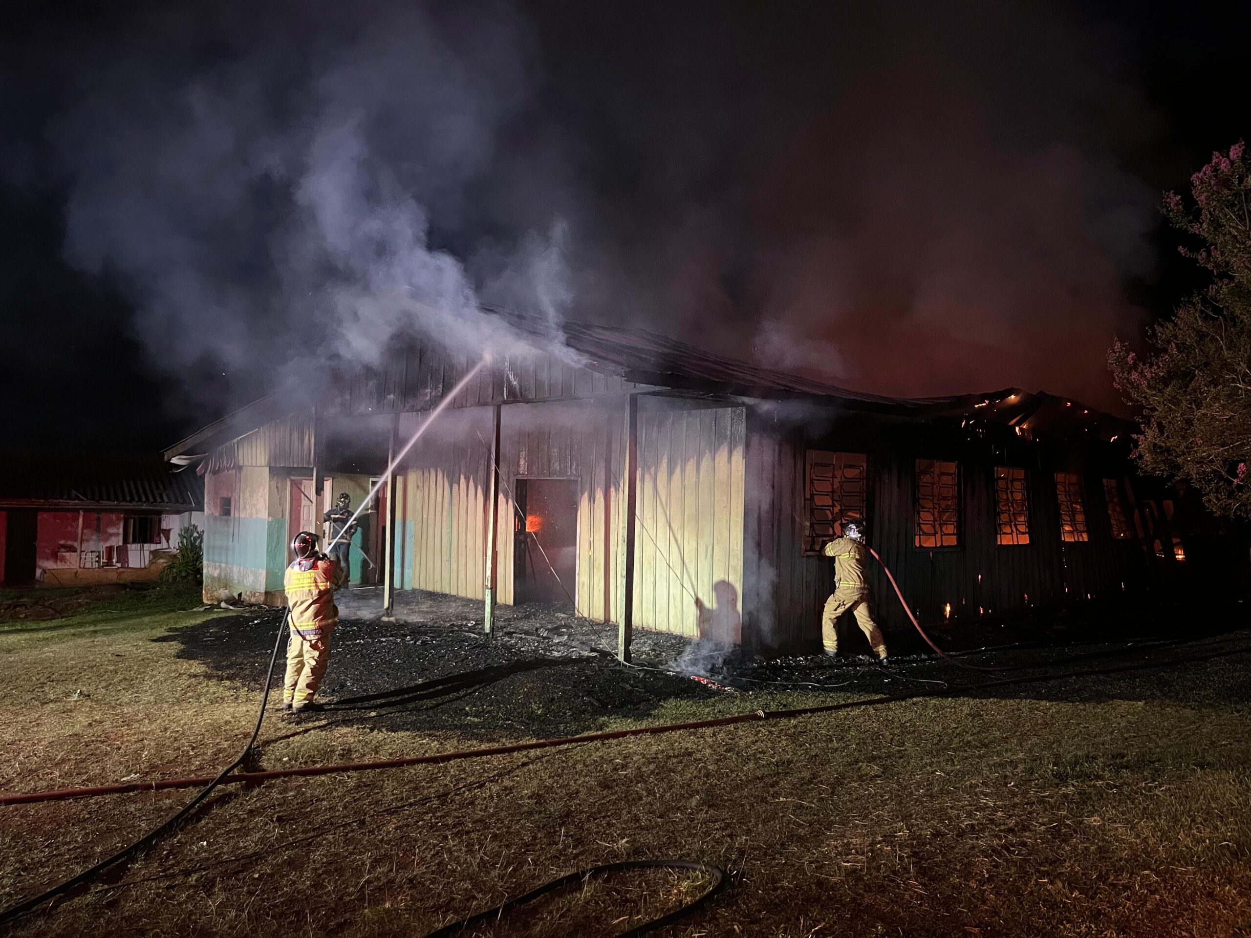 O salão comunitário da Capela São Paulo, na comunidade Invernada Grande, em Laranjeiras do Sul, foi destruído pelo fogo no início da noite dessa quinta-feira (22).