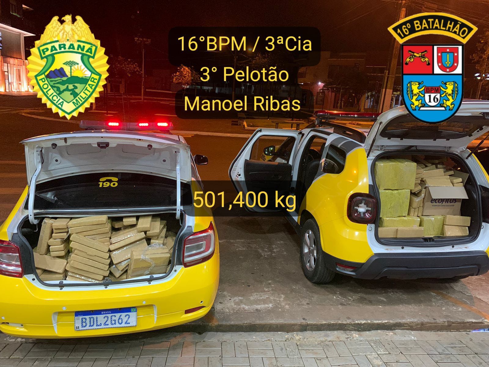 PM de Manoel Ribas apreende mais de meia tonelada de maconha