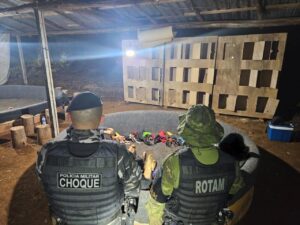 Com o apoio de uma equipe do Pelotão de Choque, as equipes localizaram a propriedade e conseguiram abordar oito homens que tentaram fugir pela mata.