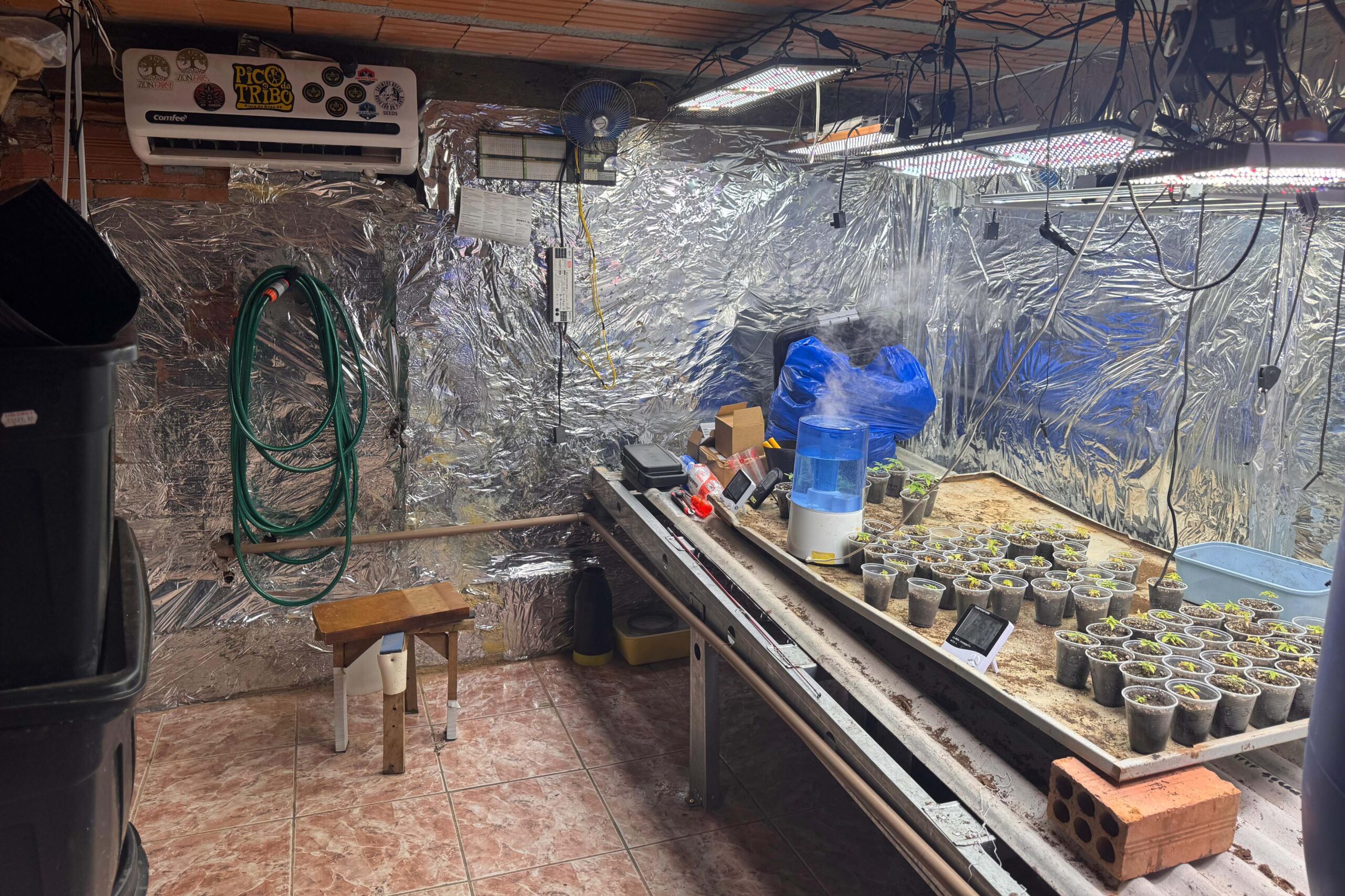 “Verificou-se uma estrutura significativa para propiciar o negócio ilícito. Isolamento, ar-condicionado, ventiladores e até purificador de ar foram montados. Toda estrutura foi desmanchada e o material apreendido”, explica.