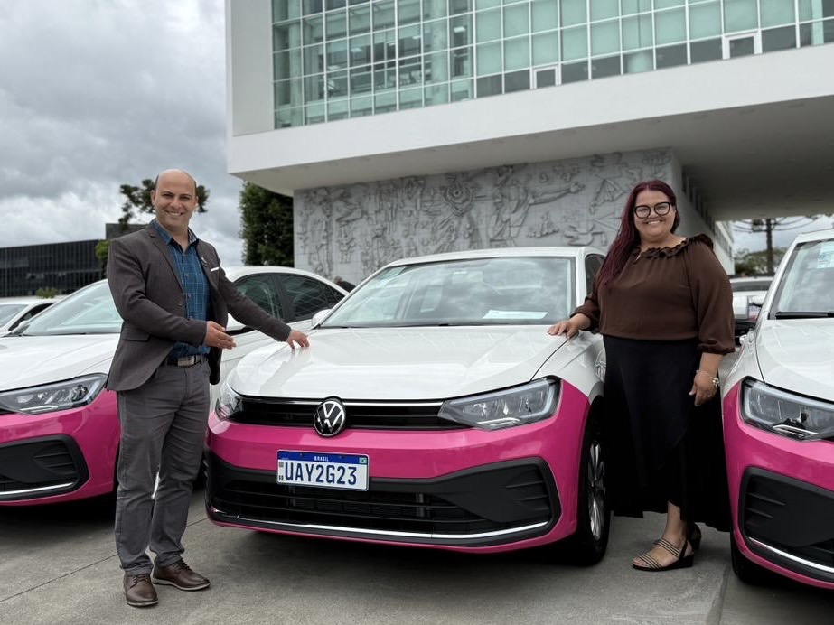 Junto com a secretária municipal da mulher, Telma Regina Nardi Milano Januário, e com a Procuradora da Prefeitura, Aline Gheller, o gestor recebeu em Curitiba, nesta segunda-feira (24), um carro 0 km.