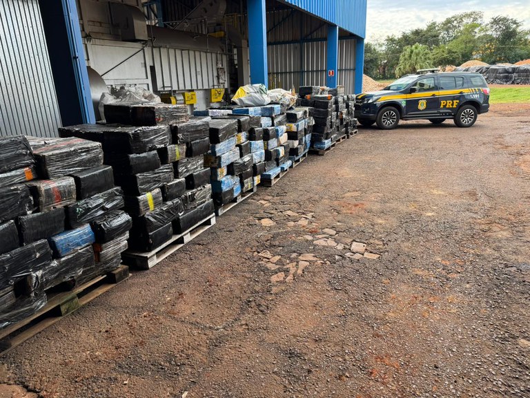 A Polícia Rodoviária Federal (PRF) apreendeu, na manhã dessa quarta-feira (4), 7.460 quilos de maconha e 7,56 quilos de skunk durante fiscalização na BR 163, em Guaíra. A droga estava escondida em meio a uma carga de soja transportada por um caminhão bitrem.