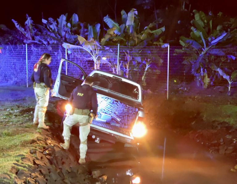 Na vistoria, foram encontrados 848 quilos de maconha na caminhonete. Também, os policiais verificaram que a caminhonete havia sido roubada no dia 7 de abril, em Foz do Iguaçu.