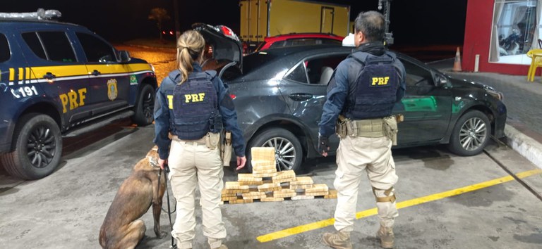 A droga foi encontrada com o auxílio de cão de grupo especializado da Polícia Rodoviária Federal (PRF).