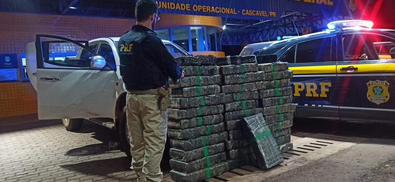 O veículo foi localizado numa estrada rural nas proximidades da BR-277, em Cascavel. O veículo tinha placas falsas e possuía queixa de roubo/furto. na caminhonete havia 456 quilos de maconha.