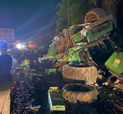 PRF registra acidente grave entre colheitadeira, caminhão e carro