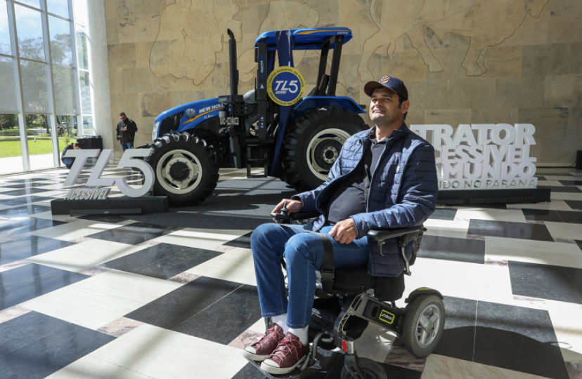 A cerimônia para apresentar o Plano Safra Paraná, o maior da história do Estado, também marcou outro importante lançamento: o primeiro trator agrícola com acessibilidade do mundo. O trator modelo TL5 Acessível, produzido pela New Holland em sua fábrica em Curitiba, é uma máquina destinada a pessoas com deficiência motora nos membros inferiores, possibilitando que elas exerçam as suas atividades no campo de maneira independente.
