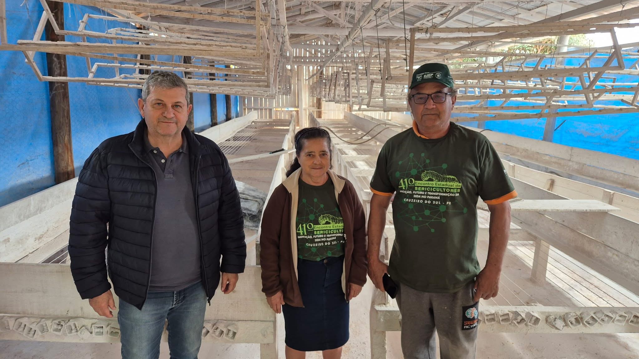 A relação com a Bratac foi essencial para a inscrição no Concurso Seda Paraná. “Foi graças ao Rogério Ugucioni e ao Mateus Raimundo [Bratac]”, contou Gisonete Souza, que atua na atividade, há 28 anos, com o marido Antônio Souza. “Eu mexia com feijão e milho. Mas conheci o bicho da seda e vi que dava para manter a família empregada no sítio”, contou Antônio Souza.