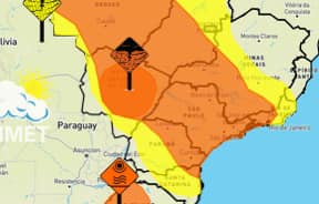 Quase metade do Paraná está em alerta laranja para tempestades e outra metade, em alerta amarelo, até as 10 horas deste domingo (12), segundo informações do Instituto Nacional de Meteorologia (Inmet).