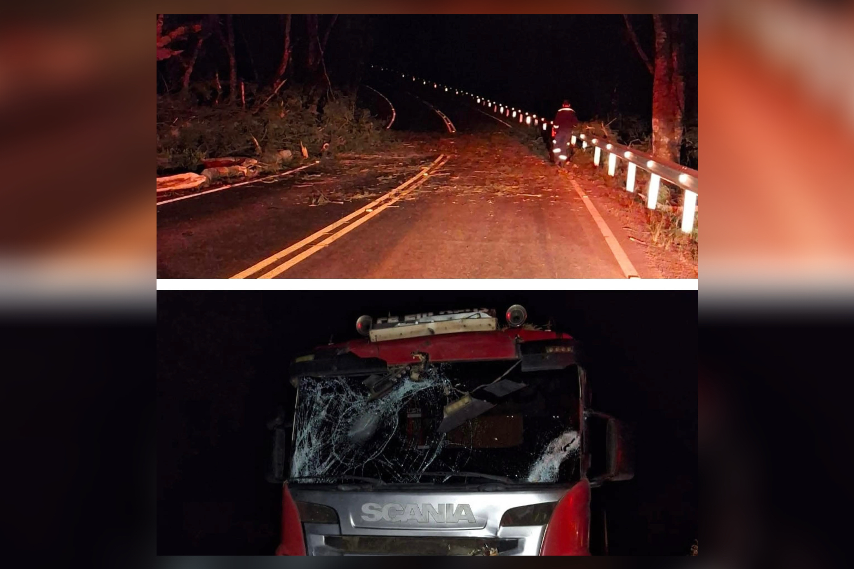 Uma queda de árvore causou um acidente de trânsito na PR 487, na madrugada deste sábado (17), por volta das 3h, em Manoel Ribas.