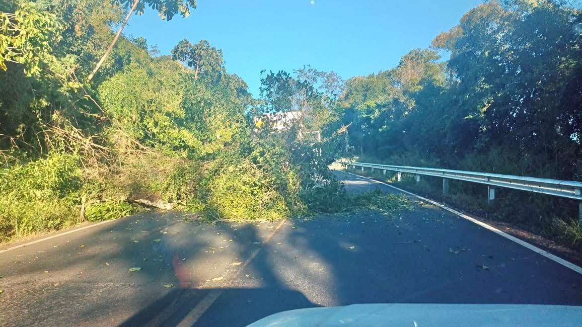 Segundo populares, a árvore caiu sobre a pista na comunidade Munhoz, próximo ao Recanto Casa Antiga, interditando a via.