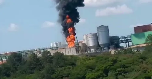 Torre de fábrica da Klabin pega fogo em Telêmaco Borba