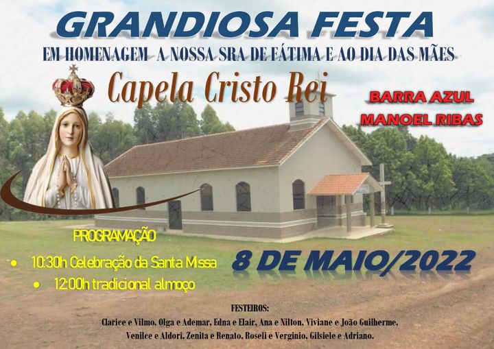 O Conselho Econômico da Capela Cristo Rei e os festeiros convidam a todos para participarem com suas famílias, principalmente, para darem esse presente para suas mães.