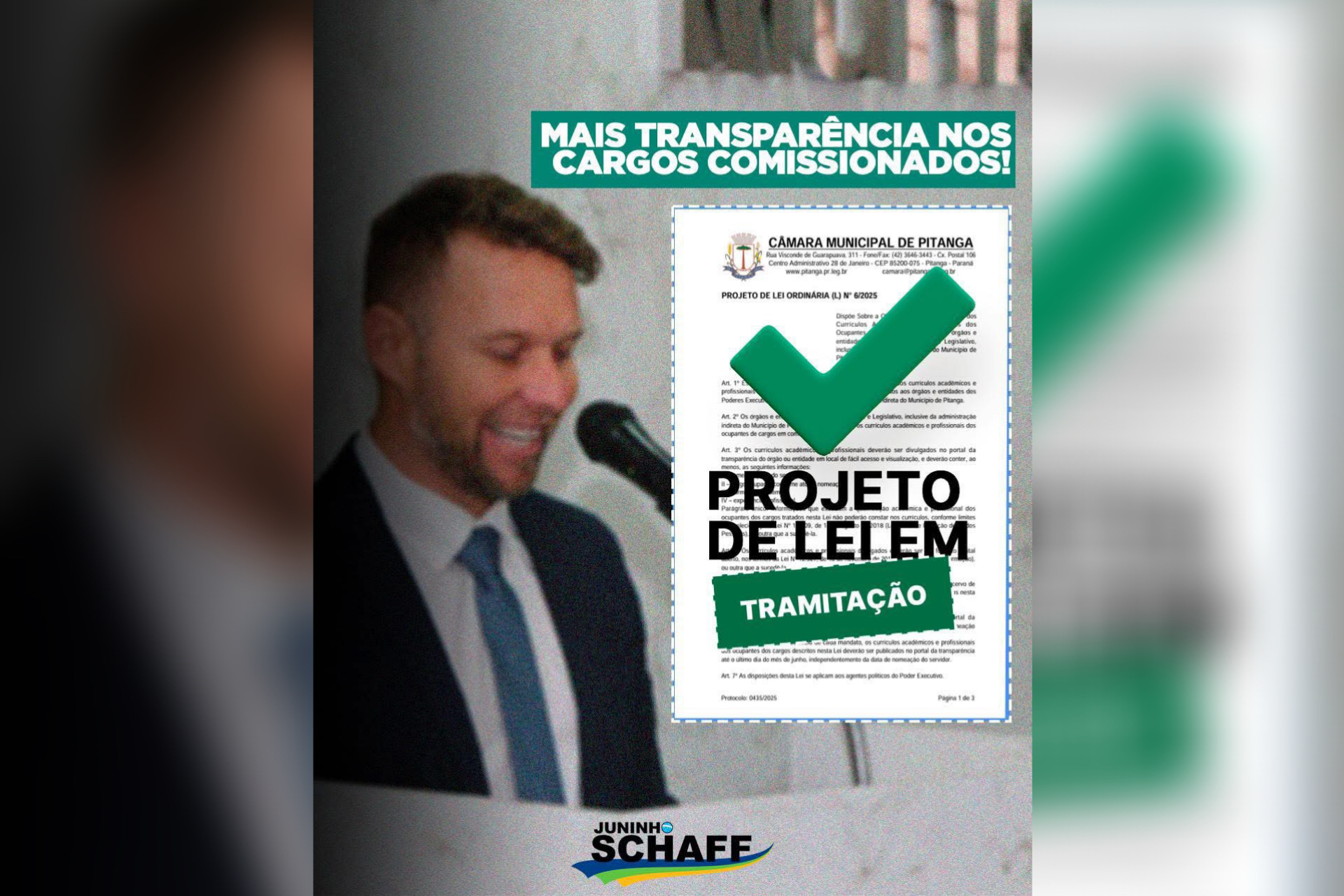 Exemplo disso, é um Projeto de Lei (PL) proposto por Juninho que obriga a divulgação de currículos acadêmicos e profissionais de funcionários comissionados da Prefeitura e da Câmara de Vereadores.