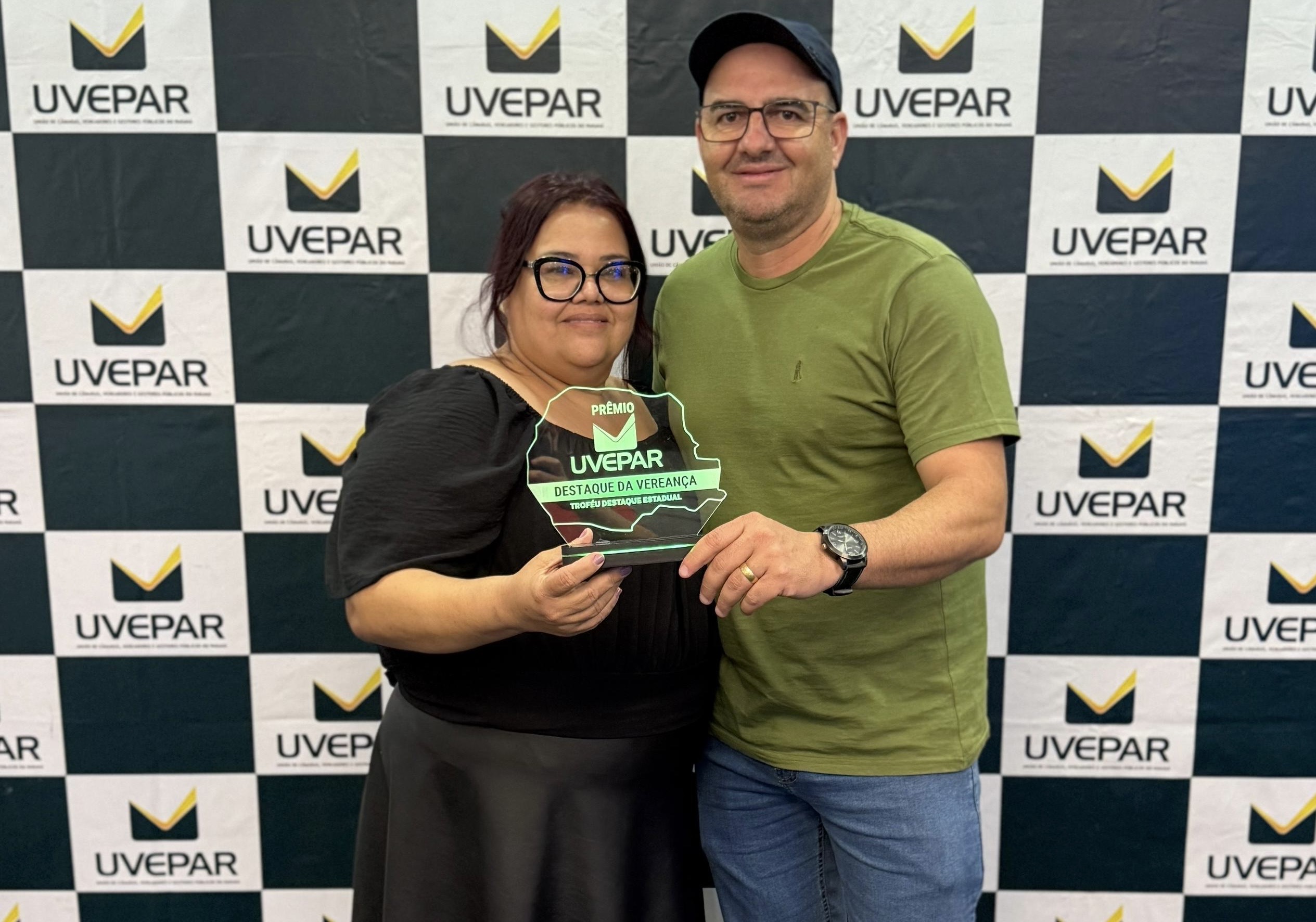 A parlamentar recebeu, ao lado do vereador e presidente da Câmara de Manoel Ribas, Marcio Patera, o prêmio de Projeto Destaque da Vereança, pela União de Câmaras, Vereadores e Gestores Públicos do Paraná (UVEPAR-PR), pelo Projeto de Lei (PL) “Aluguel Social”.